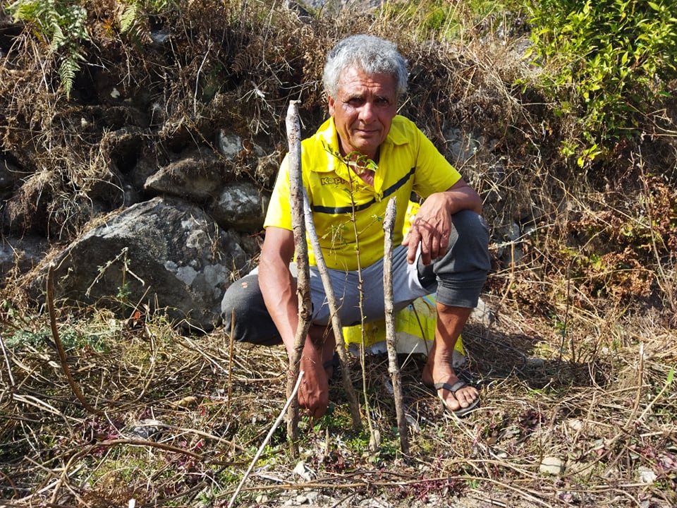 “I have planted 1,700 saplings of timur and lauth salla—1500 in my private land and 500 in community forest. Those saplings are my last hope,” he says.